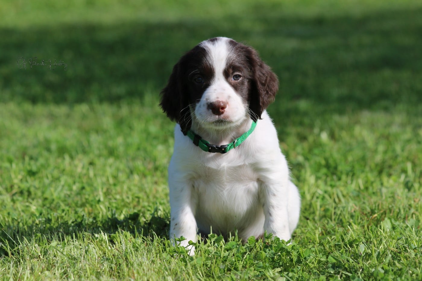Mâle Collier Vert Clair - Le plus petit de la portée mais le plus énergique !! Un petit chien qui ne se laisse pas marcher sur les pattes.